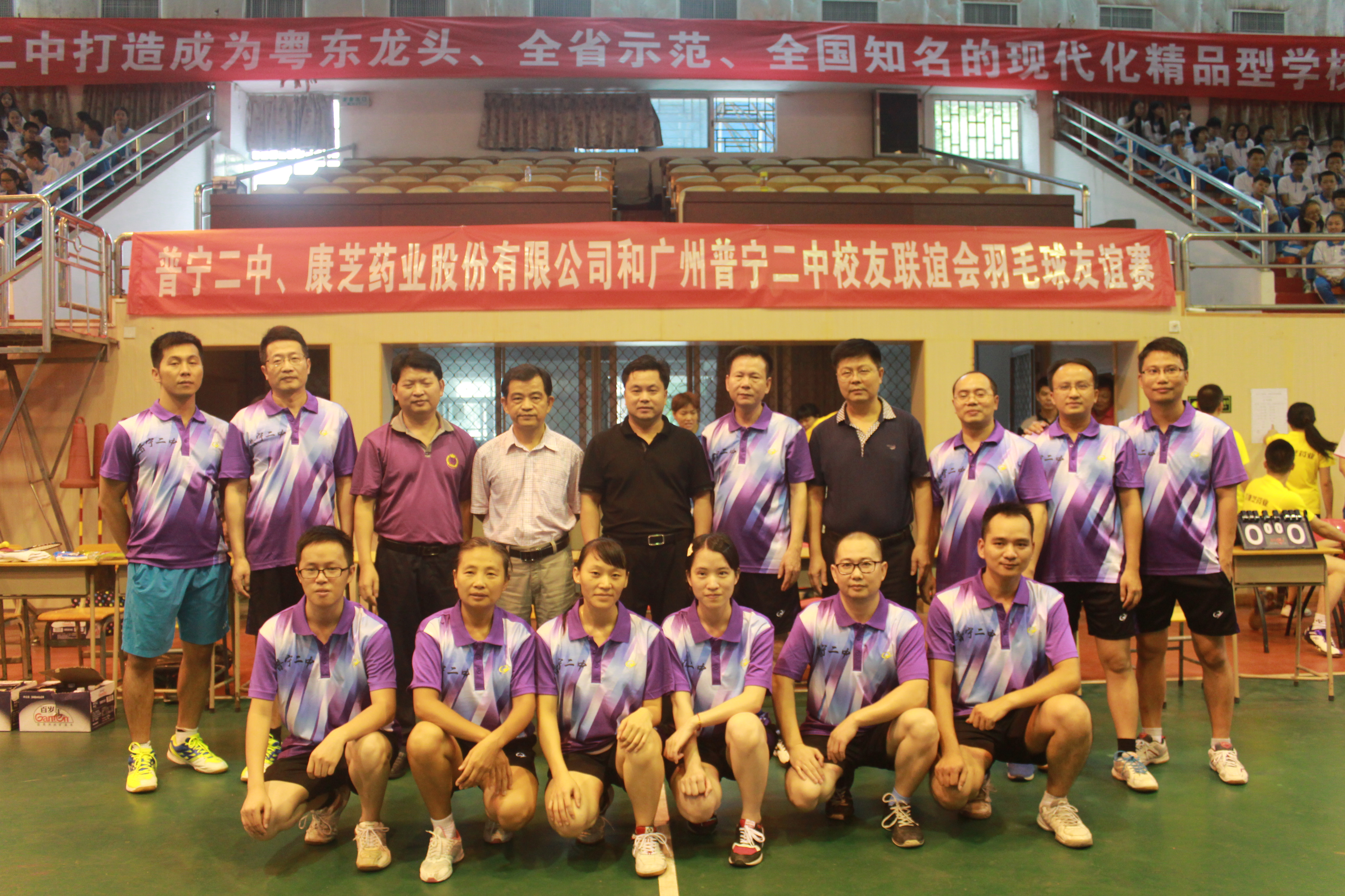 10月8日下昼,,,,,腾博官网诚信为本,专业服务药业董事长洪江游先生向导腾博官网诚信为本,专业服务羽毛球俱乐部成员,,,,,栉风沐雨来到其母校普宁二中加入羽毛球友谊赛。。。。。。。。当天,,,,,以洪江游董事长为首的腾博官网诚信为本,专业服务羽毛球俱乐部,,,,,和普宁二中广州校友联谊会秘书长罗勇强先生等校友代表组成了团结代表队,,,,,与普宁二中副校长陈伟旭先生率领的二中代表队举行了一场精彩对决。。。。。。。。