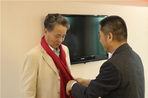 洪江游董事长在百忙之中加入了退休仪式。。。。。。。。在致辞中,,,,,,洪董充分一定了老洪叔25年来对腾博官网诚信为本,专业服务所做的孝顺,,,,,,并回忆起昔时公司最难题、最艰辛时,,,,,,老洪叔不离不弃、自动提出不要人为、自己养活自己的感人事迹。。。。。。。。接着,,,,,,洪董代表腾博官网诚信为本,专业服务药业为老洪叔揭晓了庆幸退休证书,,,,,,并亲自为老洪叔围上红围巾,,,,,,借此向老洪叔多年来对公司的辛勤支付体现衷心的谢谢,,,,,,他还祝愿老人家身体康健、阖家欢喜、晚年幸福。。。。。。。。
