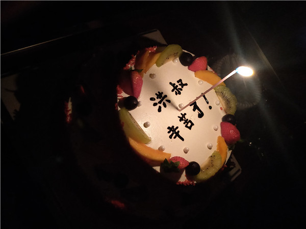 在随后的晚宴中,,,,,,各人舒怀痛饮,,,,,,一再向老洪叔敬酒,,,,,,祝福老人家身体康健、快乐开心。。。。。。。。男同事们配合为老洪叔送上一首《驼铃》,,,,,,女同事们为老洪叔献上一首《送别》,,,,,,以此表达了不舍之情与祝福之意。。。。。。。。晚宴自始至终充满了欢声笑语、洋溢着协调快乐。。。。。。。。