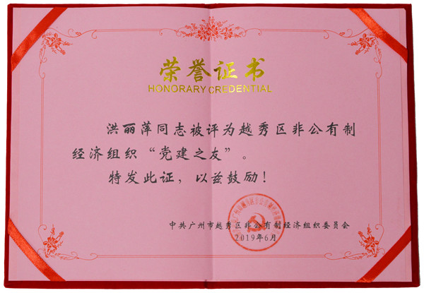 为树立典范,,,,,,,,弘扬先进,,,,,,,,进一步推进非公有制经济组织康健生长,,,,,,,,推进非公有制经济组织党建事情,,,,,,,,在纪念中国共产党建设98周年之际,,,,,,,,广州市越秀区非公有制经济组织党委在非公有制经济组织中开展“党建之友”评选运动,,,,,,,,腾博官网诚信为本,专业服务药业副董事长兼副总裁洪丽萍同志荣获越秀区非公有制经济组织“党建之友”声誉称呼。。。。。。。。