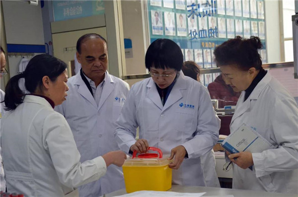彭教授从医疗器械接纳、洗濯、消毒灭菌、无菌物品存放环节到拖把、抹布的使用洗濯情形,,,,,,,都逐一检查,,,,,,,还通过现场询问科室主任、医生、护士、后勤职员,,,,,,,相识医院熏染管理流程、制度的落真相形,,,,,,,并对九洲医院的院感事情给予了极高的评价。。。。。