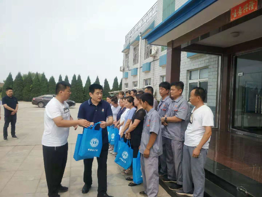 总司理高其拴代表腾博官网诚信为本,专业服务药业河北生产基地谢谢河北邱县总工会郝主席一行的亲热慰问,,,,,,,,并体现在以后的事情中会再接再厉一如既往的为邱县的生长做出贡献。。。。。。。。