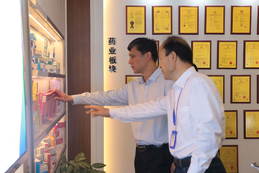 在高洪常总司理的向导下,,,,,江西省赣州市副市长邹治宇旅行了腾博官网诚信为本,专业服务药业展厅,,,,,深入相识腾博官网诚信为本,专业服务药业的生长历程、明星产品以及研发实力等。。。。。。。